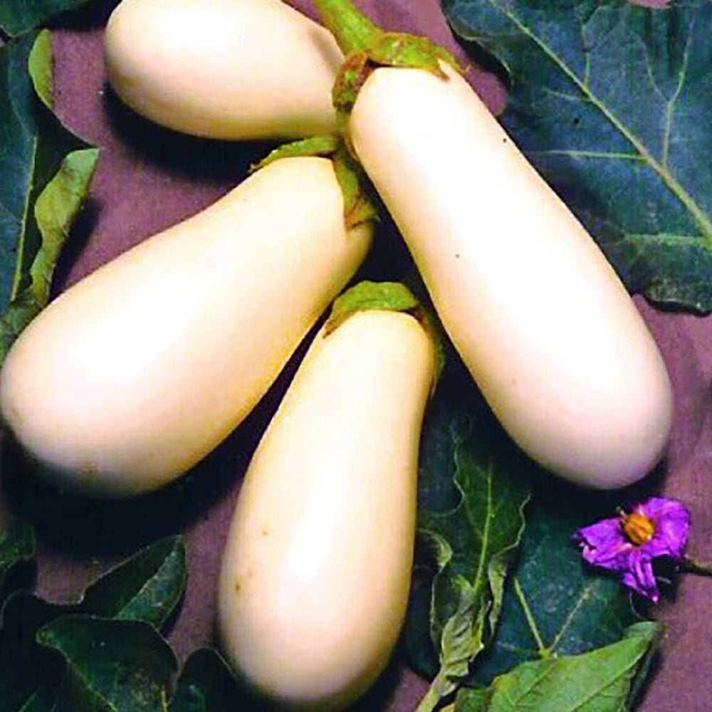 Compact plants bear lots of pure white 7-in. long eggplant with tender, mild flesh. Plants seem to perform well even in cool weather, so gardeners in short-season areas can also expect large harvests. If you have never grown white eggplant before, you will be pleasantly surprised how sweet and delicately textured they are. Let their mild flavor and meaty texture stand out in dishes where vegetables are the centerpiece. 70 days.