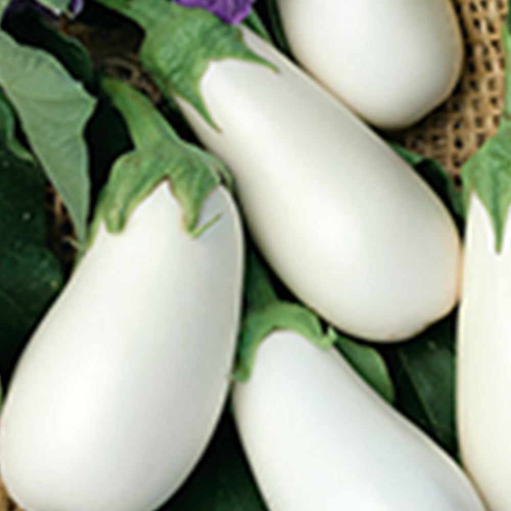 Classic teardrop-shaped eggplant is about 5 to 7 inches long with a beautiful. glossy white skin and pure white, mild flesh inside. White eggplant is well known for having no trace of bitterness whatsoever, so it has become a favorite of many gardeners. Tall, vigorous plants provide a protective canopy for the developing large harvest of eggplant. 75 days.
