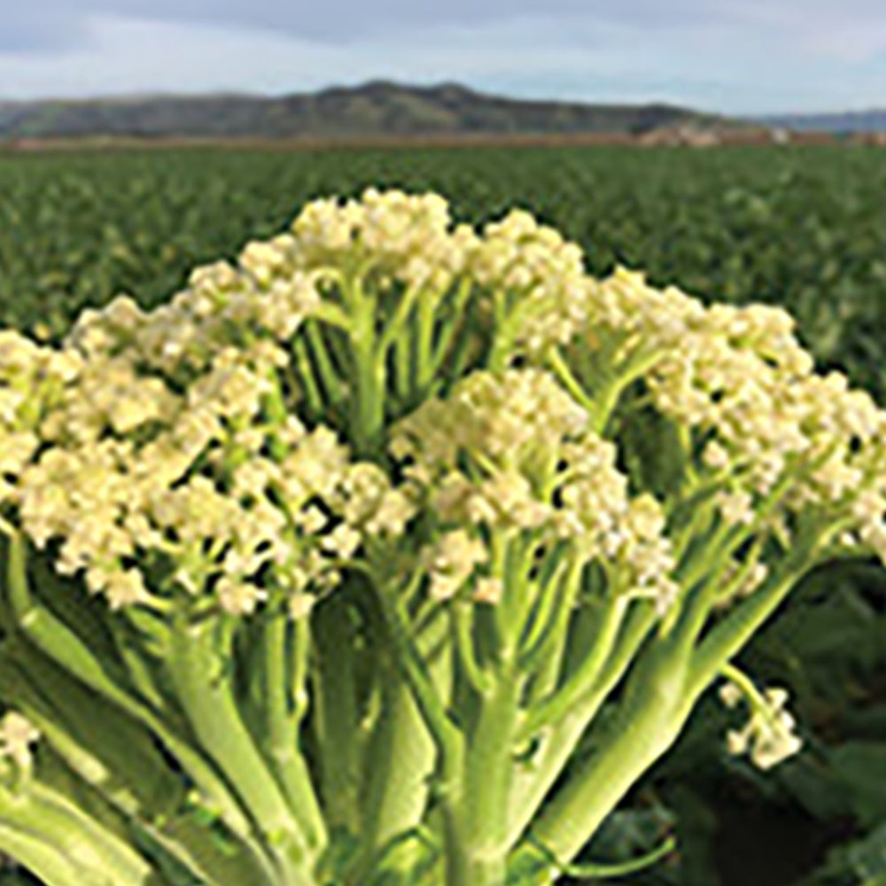 Until recently stem cauliflower was only available in upscale restaurants and fancy markets. Fortunately, we are able to offer the latest innovation in gourmet cauliflower. This new stem cauliflower is one of the best tasting we have trialed. As the flowering head opens, the stems are exposed to sunshine and the color of the stem changes from white to green. At the same time the stem grows increasingly sweet. The 8-inch flowering shoots will delight your taste buds and enrich your dining experience. Due to its adaptability in a wide range of growing regions, you are likely to have success growing Dolce Vita. Only one harvest, so it is best to stagger your plantings. 65 days to mature from transplant.