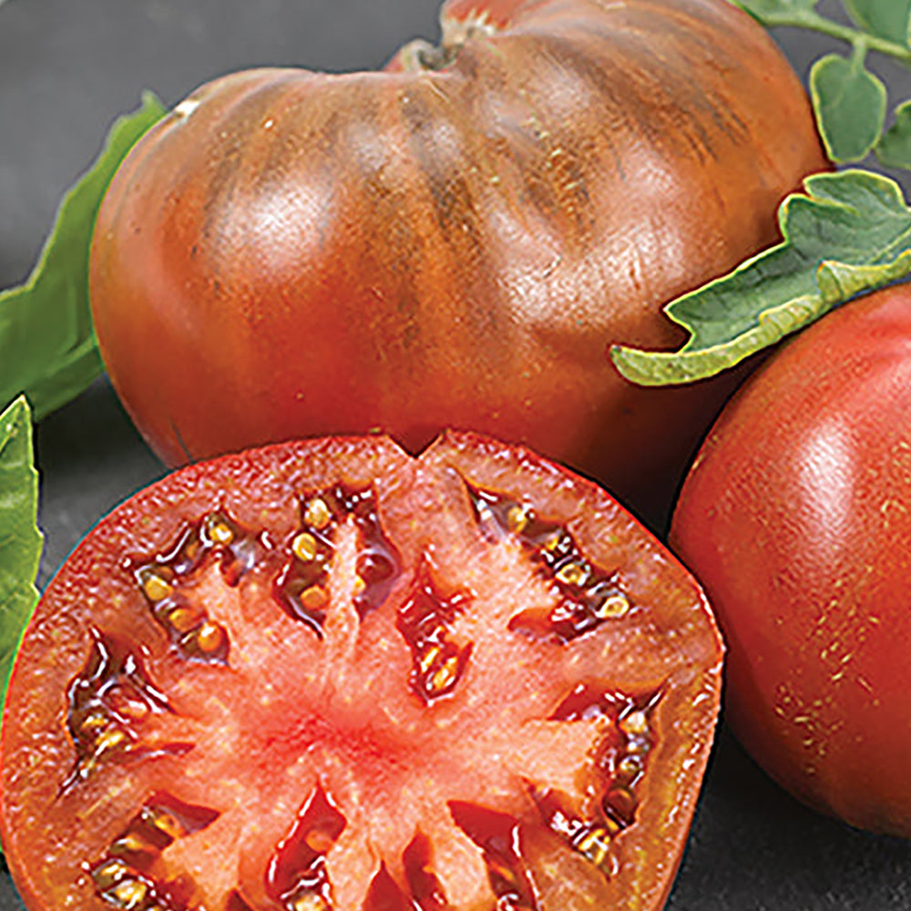 Delicious 9 to 10 ounce fruit are firm and smooth, having excellent flavor and purple color all the way through. If you love Cherokee Purple you will also like this tomato. Vigorous indeterminate plants mature in 80 days.