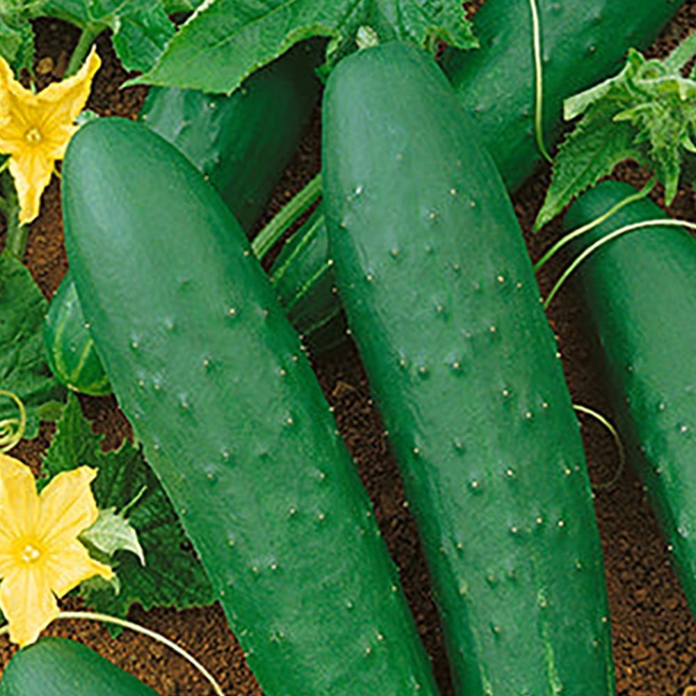 An heirloom that produces tasty dark green tapered fruit, measuring 6 inches by 2 ½ inches, on medium-large vines that are very productive. Black spined. Great for pickling and for salads. 55 days.