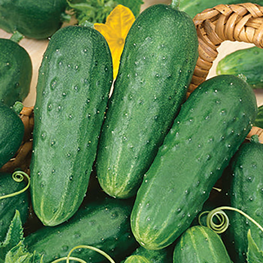 Developed by North Carolina State University, this widely adapted pickling cucumber was bred for high yield, and disease resistance including ANT, ALS, CMV, DM, PM, and scab. Blocky fruits are medium green and measure 3 inches in length by 1 inch in diameter. Plants are primarily female, to allow greater yield potential. 50 days.