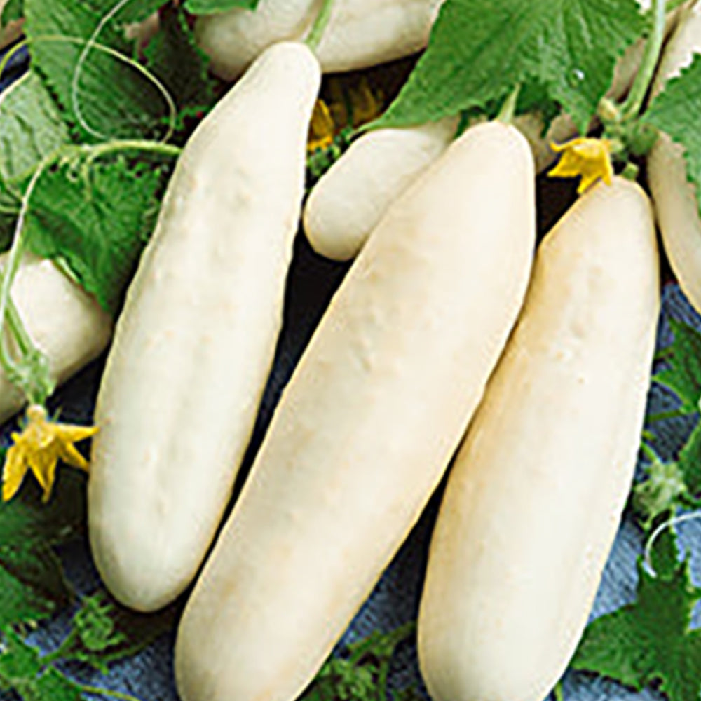 Originally discovered in New York state in the 1890’s, this 7 to 9 inch long cucumber starts as ivory white and turns more of a cream color at full maturity. The deliciously crisp fruit are produced on vigorous vines. Grows well in hot weather. 60 days.