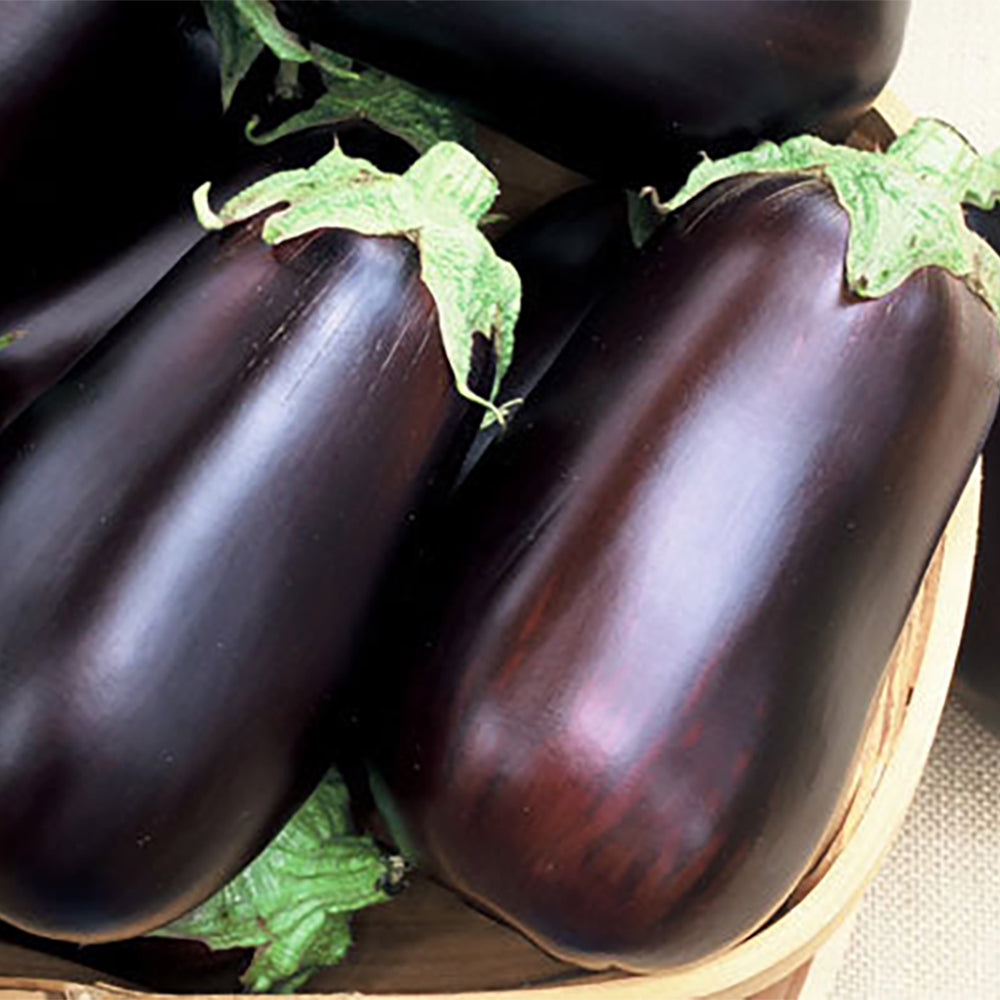 Glossy, dark, purple-black skin and outstanding production are what make this variety really special. Its classic Italian shape is an elongated oval up to 9 inches long and fruit has a very firm flesh with a slow seed development, prolonging fruit quality. Sets well even under cool conditions. 70 days.