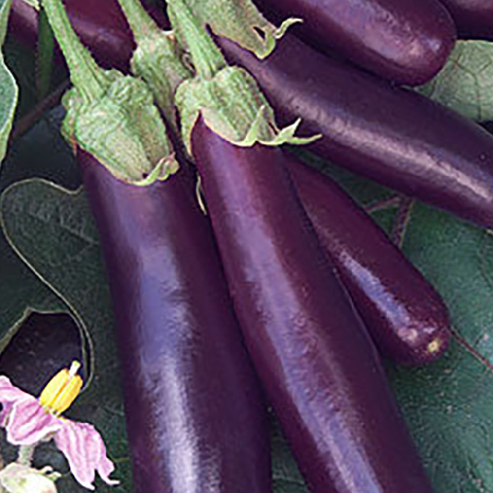 Slender, glossy-black Asian eggplant is 8 to 10 inches long with thin skin, mild flesh, and delicate flavor. It matures very quickly and sets fruit in a wide range of temperatures, which makes harvests last even longer. Enjoy these versatile eggplant grilled, roasted, or stir-fried. 58 days.
