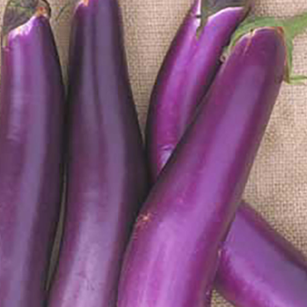 This slender Asian eggplant is one of the longest available. Its beautiful purple skin is so thin that peeling is unnecessary and creamy white flesh is reliably mild with no bitterness. Plants produce an abundance of fruit that can grow well over a foot long. Easy to grow and wonderful for grilling or adding to stir-fries. 65 days.