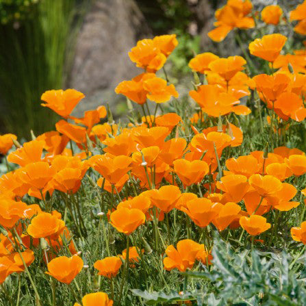 California poppies create a spectacular display of stunning golden cupped flowers during the early spring in Southern California's Antelope Valley. Sow in warm soil and cover the seed with a tiny amount of soil. Keep moist until seedlings emerge. Zones 5 – 10 are the best locations to grow this beautiful flower. 85 days.