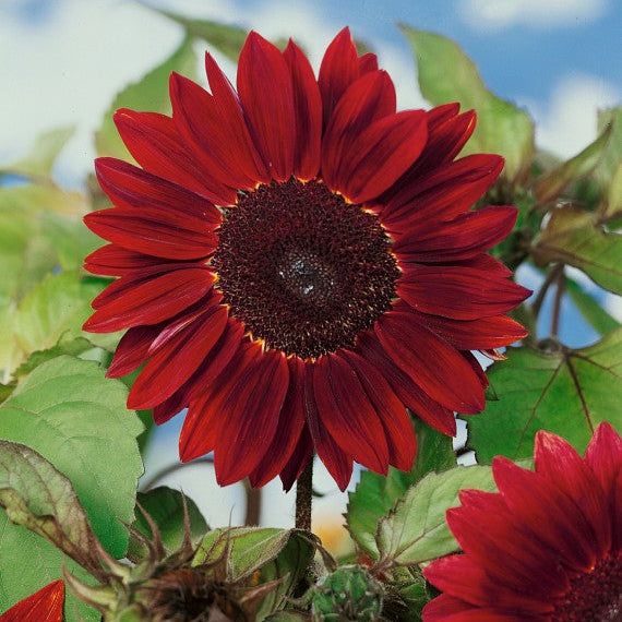 Chocolate Cherry has burgundy colored petals with a dark chocolate center. Flowers are 5 to 6 inches in width and look stunning in a bunch. Multi-branching. This heirloom can be used for cut flowers, that also have good vase life. Plants reach 6 feet in height. Direct seed at ½ inch deep after frost and once the soil reaches 50 degrees. 70 to 90 days.