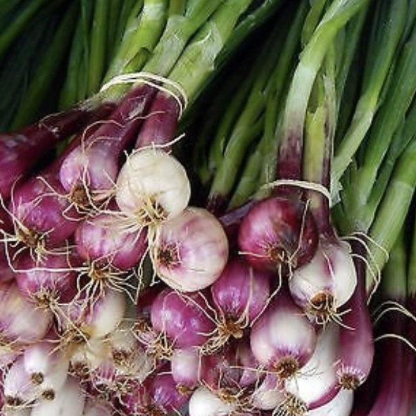 Scarlet Bandit is a bunching variety that you will enjoy growing and eating. Some call it the most beautiful onion in the world. Scarlet bulbs with red and white speckles that will dazzle and impress you when dressing up a salad. The bandit can overwinter in mild climates. Direct seed just after final frost, or seed indoors and transplant. 69 days direct seeded.