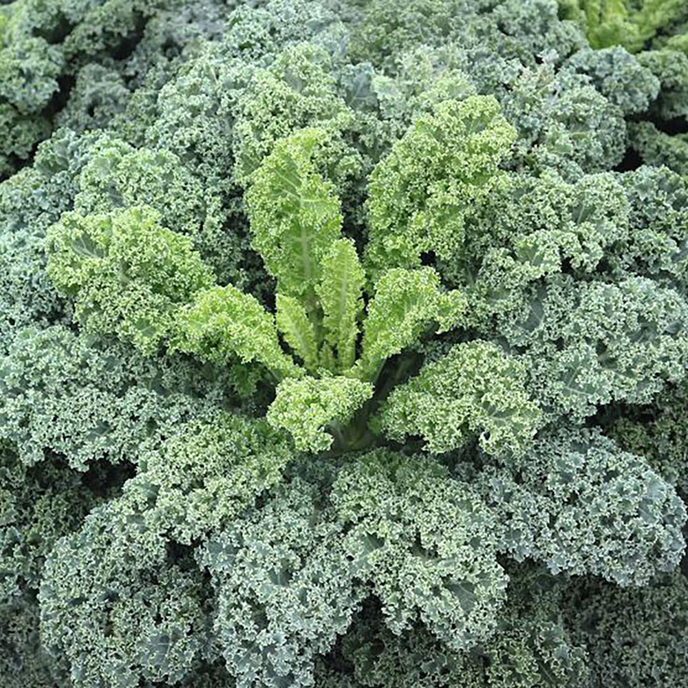 A great-tasting kale that has a short stem and compact growth habit. You can harvest the entire plant at 12 to 17 inches, or pick as you would other kale plants for young tender leaves, or use continual picking of a small number of the bottom leaves each week during the cooler growing season. Very productive. Resists yellowing. 50-60 days.