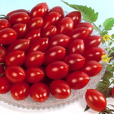 2005 ALL-AMERICA SELECTIONS AWARD WINNER - Very sweet, cherry sized tomatoes are oval shaped with a pointed blossom end and a beautiful reddish-pink color. Fruit is produced in clusters on high yielding semi-indeterminate vines, which means that plants stay more compact but continue to produce over a long season. Indeterminate. 60 days.