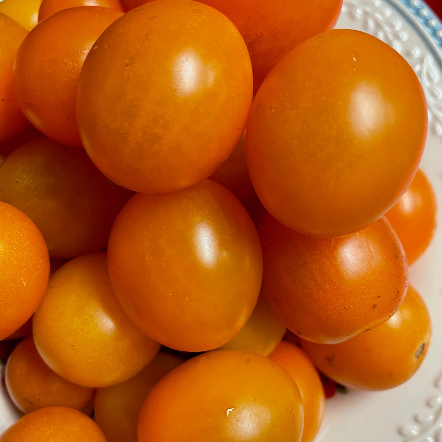 If you love Sun Gold or Sun Sugar, you will also love Sun Orange. It has unbelievably good flavor. The breeder has taken the same great flavor package, but increased the size of the fruit, and improved crack resistance. High yield potential is obvious once you see the elegant trusses brimming with fruit. Indeterminate. 65 days.