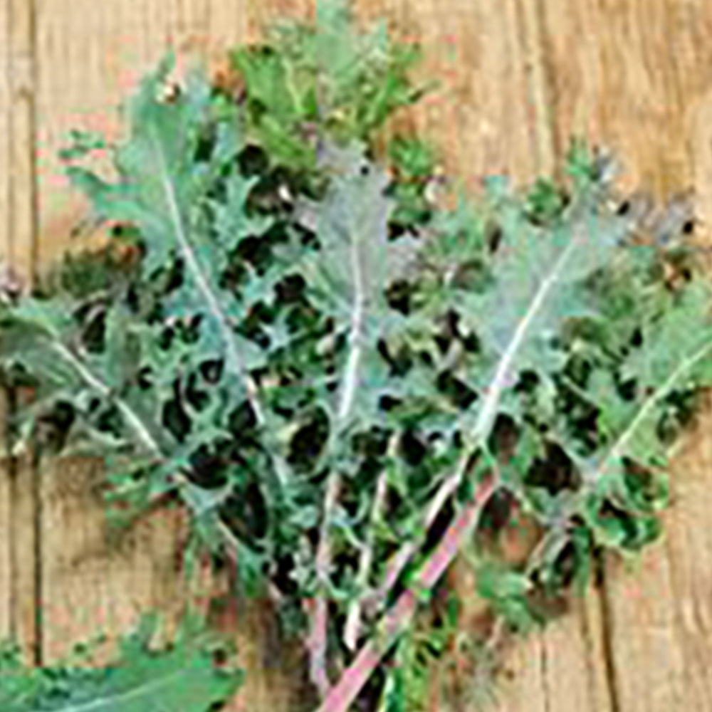 Leaves are flat and oak leaf in shape, with a dark green color. The stems are reddish-purple and intensify in color after the fall frost. Red Russian is more tender than most kale and can be used fresh or cooked. 55 days.
