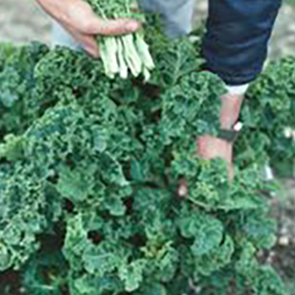 A great-tasting kale that has a short stem and compact growth habit. You can harvest the entire plant at 12 to 17 inches, or pick as you would other kale plants for young tender leaves, or use continual picking of a small number of the bottom leaves each week during the cooler growing season. Very productive. Resists yellowing. 50-60 days.