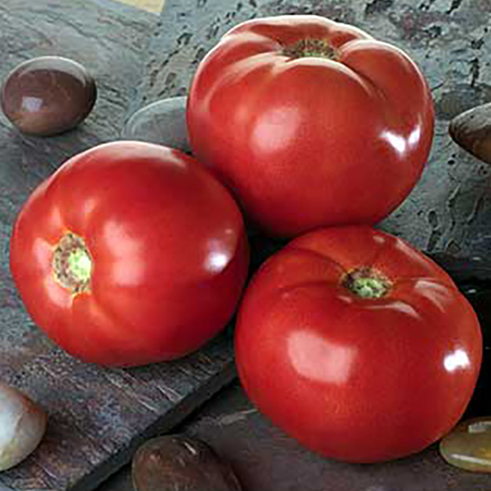 Rugged vines produce large crops of bright red, 12 to 16 oz. smooth, flavorful fruit. Similar to Big Boy, but with additional disease resistance. Firm and perfect for slicing. One of the best tasting, garden tomatoes available anywhere. Indeterminate. 75 days.
