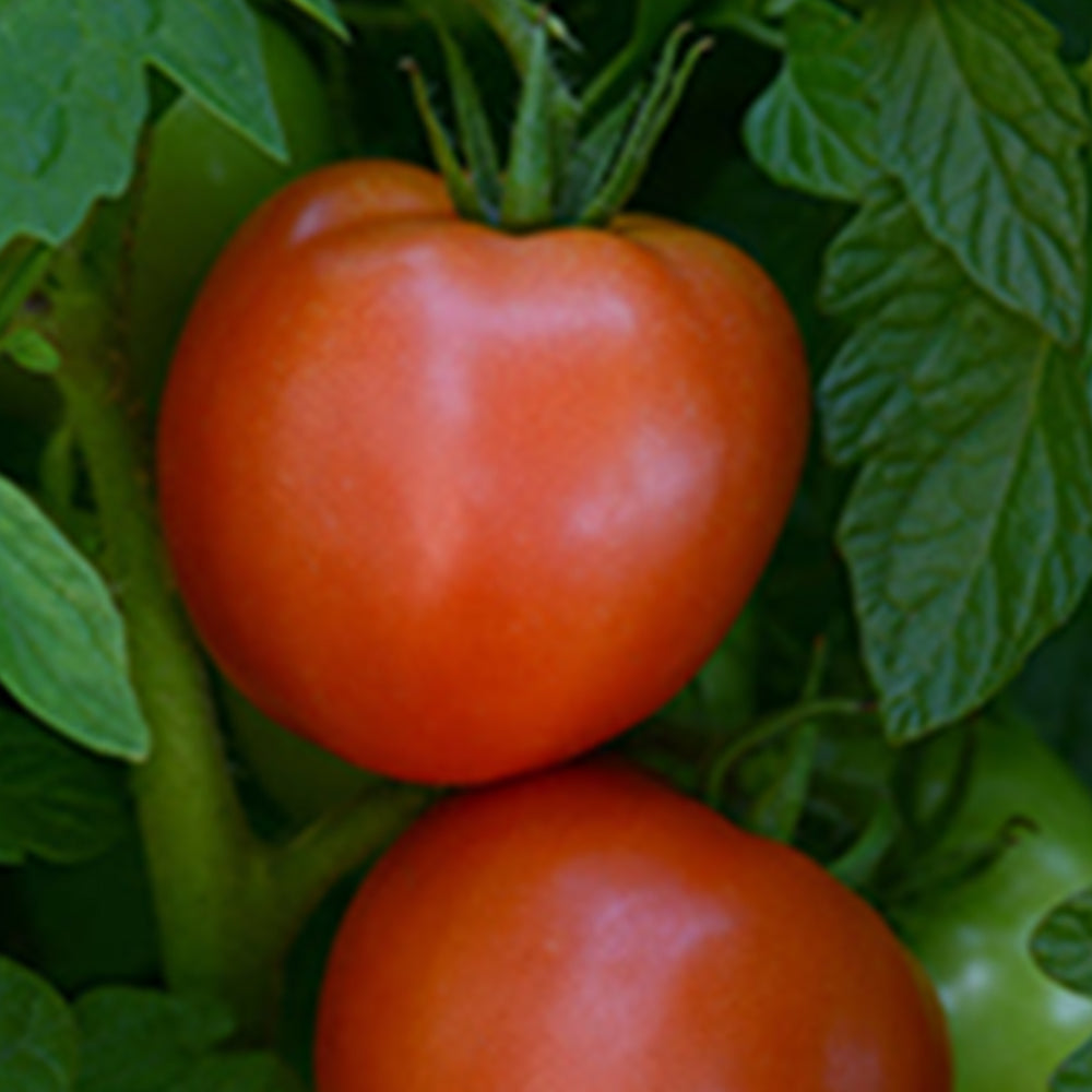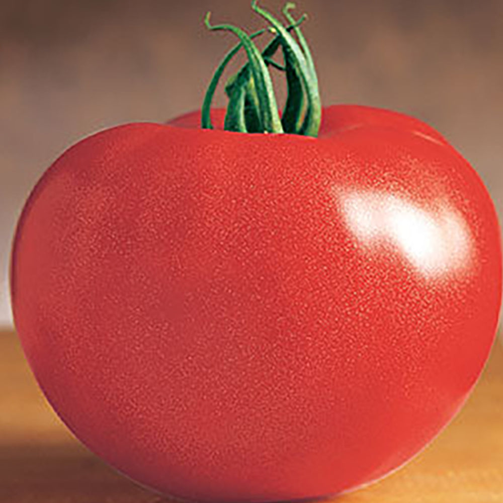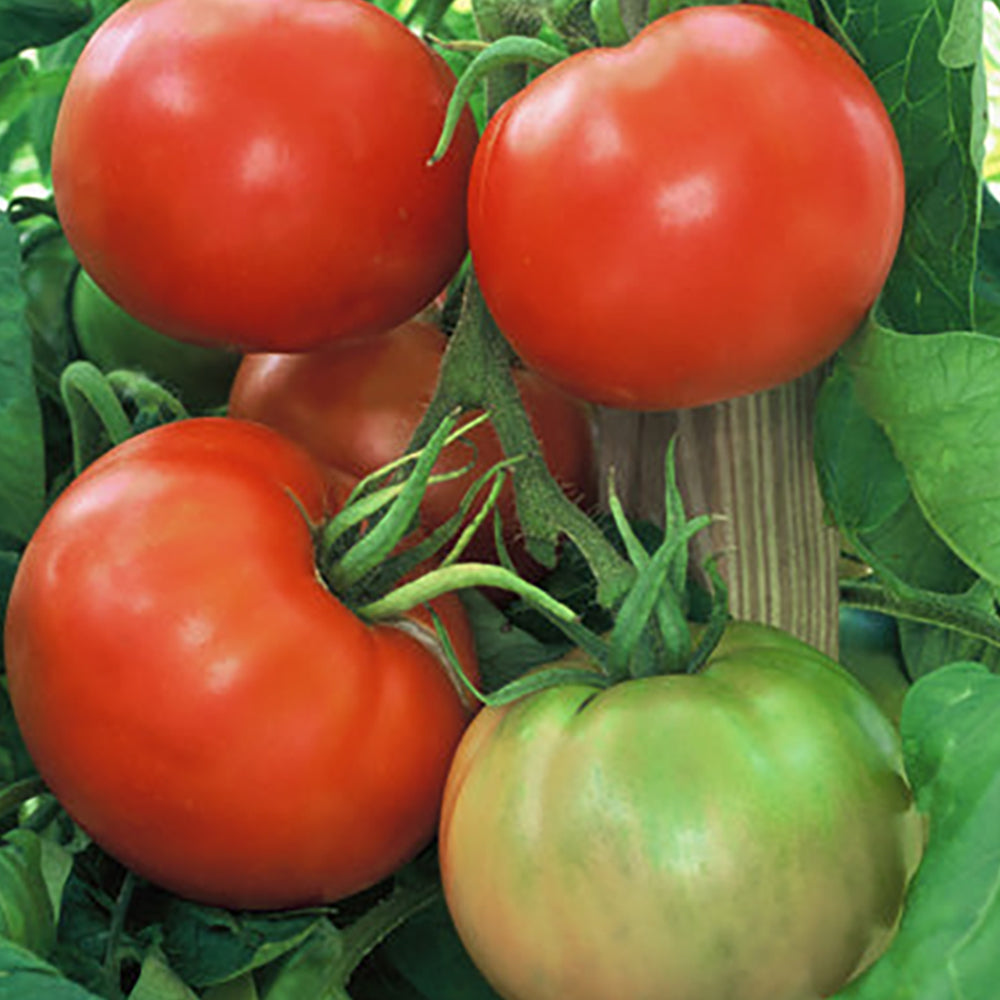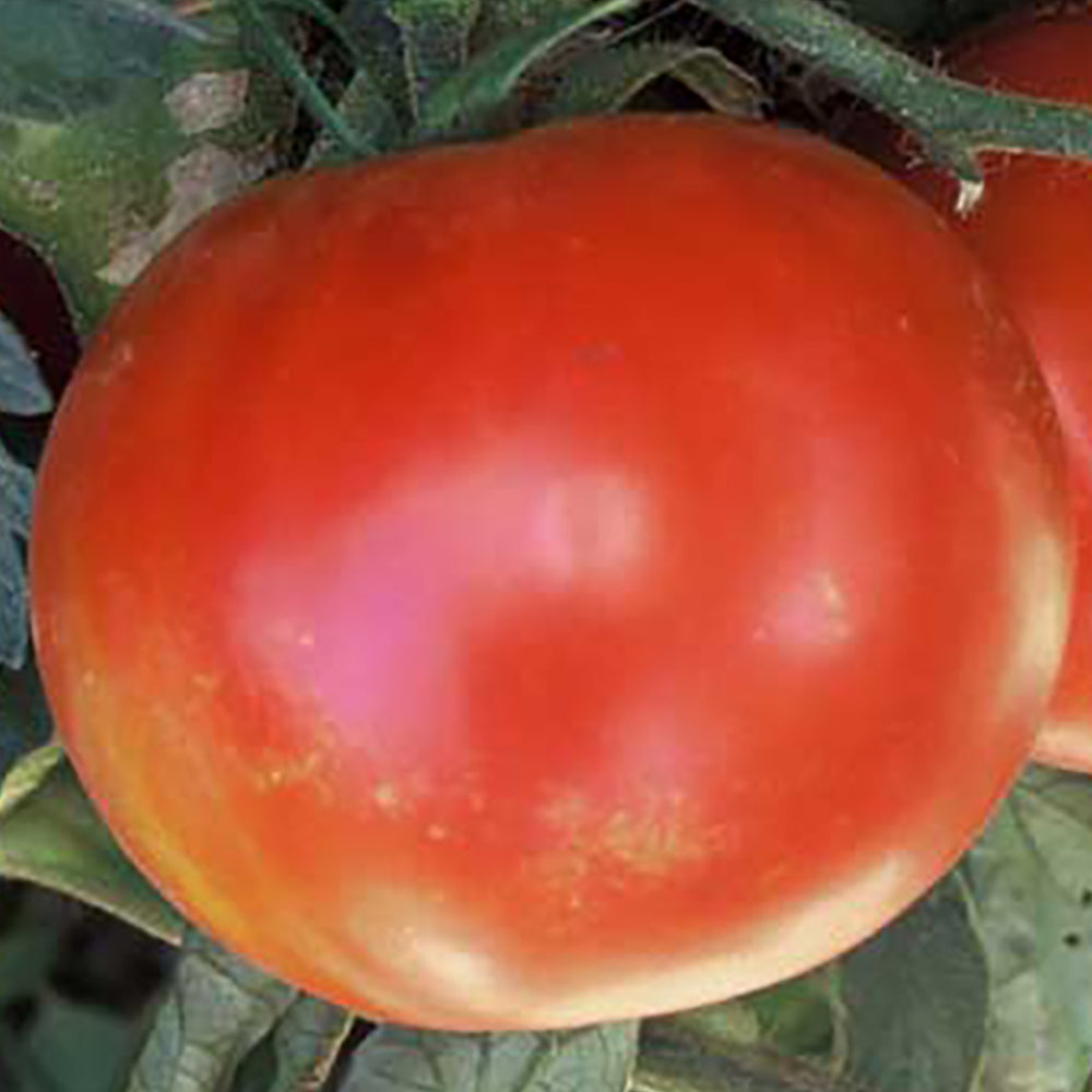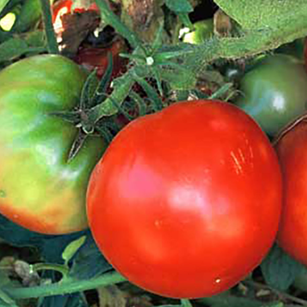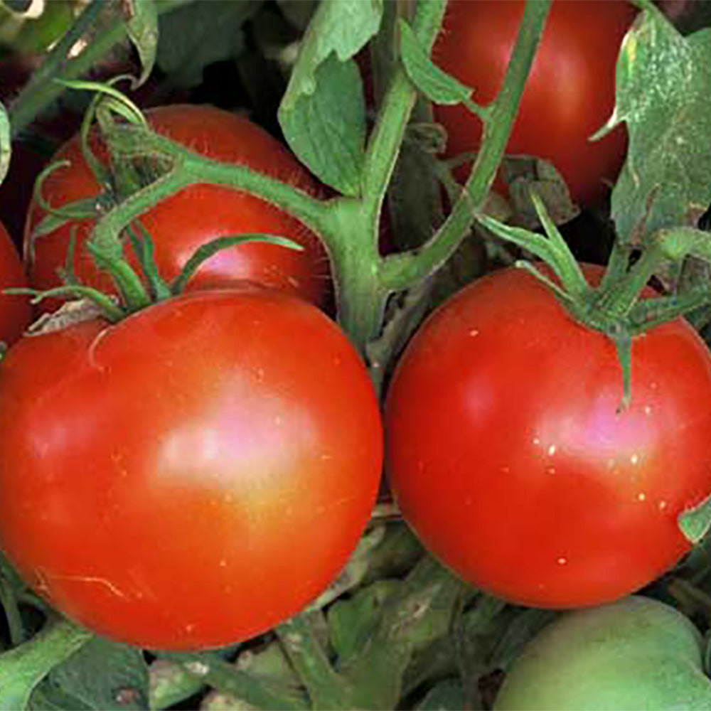 Reliably large harvests of beautiful scarlet tomatoes with thick walls and medium size. Vines are strong and offer heavy foliage cover. Well adapted to most areas. Determinate. 72 days.
