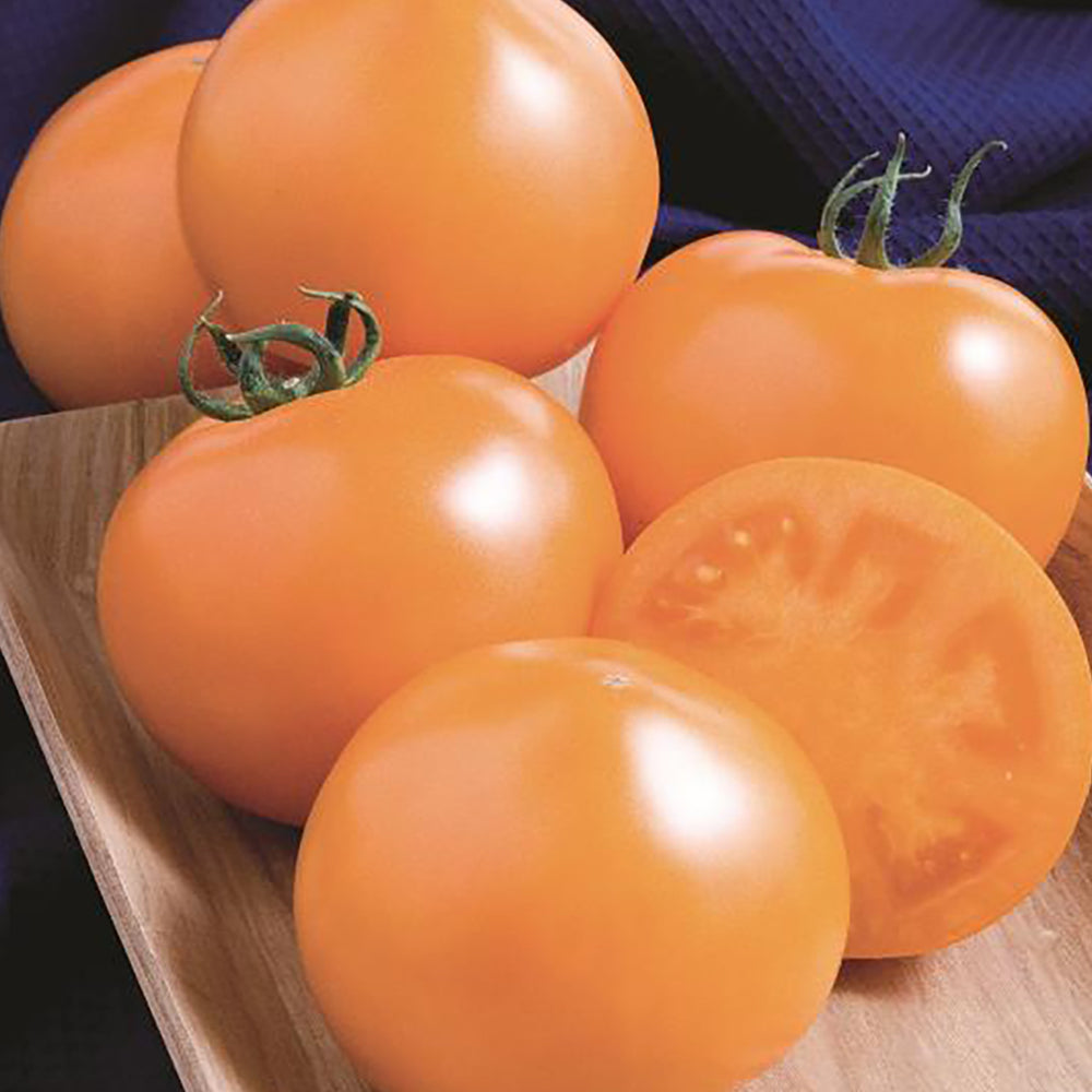 Developed by the company that brought you the Momotaro tomato (we affectionately refer to this as Momotaro Gold at Tomato Growers). Heavy production of bright gold to golden orange, 7 to 8-ounce fruit that are super-sweet and that can set in colder temperatures. Produces over a long period. Works well in greenhouses, high tunnels, and home gardens. Resists blossom end rot and cracking. Great for roadside stands. Strong disease package ToMV, F 1+2, V, SB, and nematode. Indeterminate. 75 days.