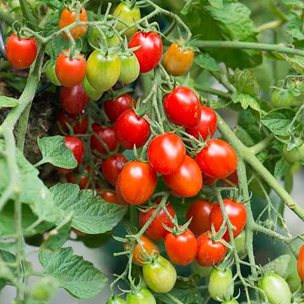 This All America winner is a patio type tomato that produces delicious and sweet crack-resistant fruit in containers or hanging baskets. They are easy to pick, with high yield potential – up to 12 pounds of fruit per plant. Plants are 12 to 15 inches tall and spreading in the open garden. A baby plum tomato with ½ ounce fruit. Late Blight tolerant. Determinate. 50 days.