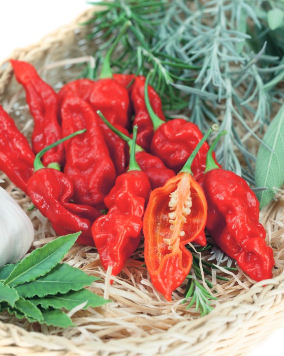 Blistering heat is the hallmark of this hybrid Ghost pepper. armed with more than 800,000 scoville units of heat. Be careful handling, consuming,and preparing. This bright red and pointed fruit is 2 ½ inches in length and has higher yield potential than other open pollinated Ghost peppers. 90 days.