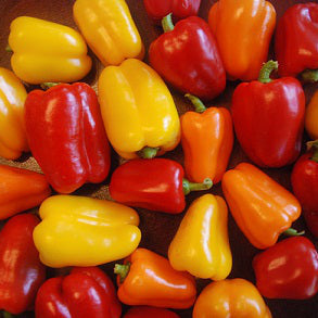 Delicious little sweet peppers are nearly seedless and the perfect size for tucking into lunch boxes or adding to an appetizer tray. We offer this blend, which has an assortment of color types that include golden tangerine, red, and yellow. Plants will become loaded with large harvests, but the peppers keep well and still stay crunchy once harvested. What a great way to get kids (of all ages) to eat their vegetables!