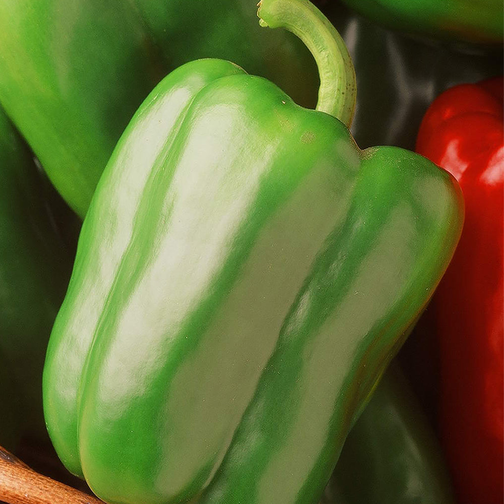 This blocky bell pepper offers more than just good taste and large size fruit. It resists 5 races of bacterial leaf spot, phytopthora blight, tobamo virus, and has great yield potential. The 4 to 4 ½ inch fruit ripen from green to red with thick walls. 73 days.
