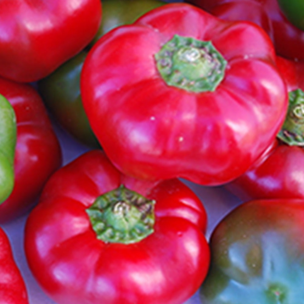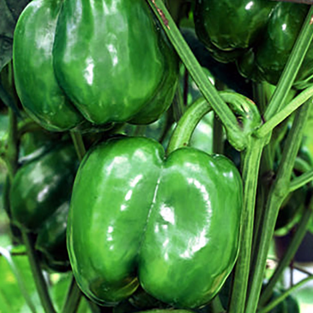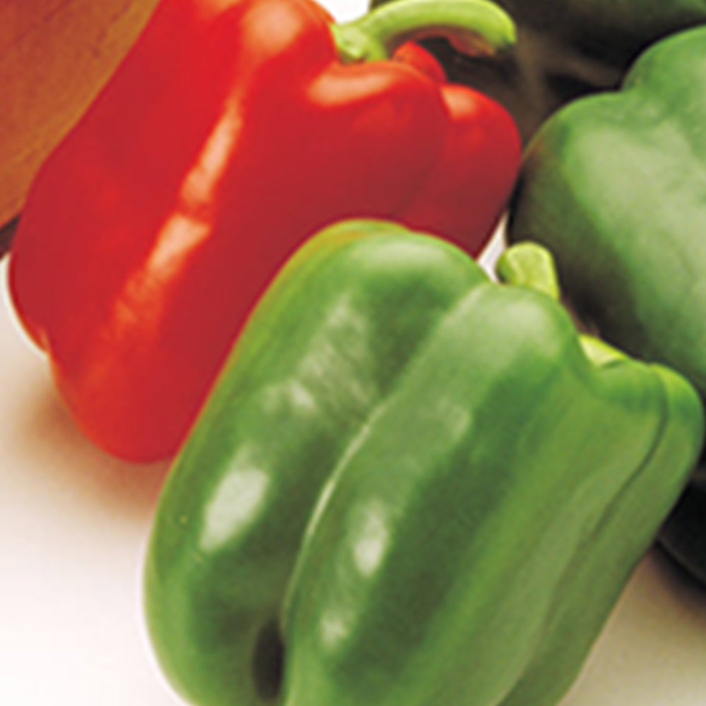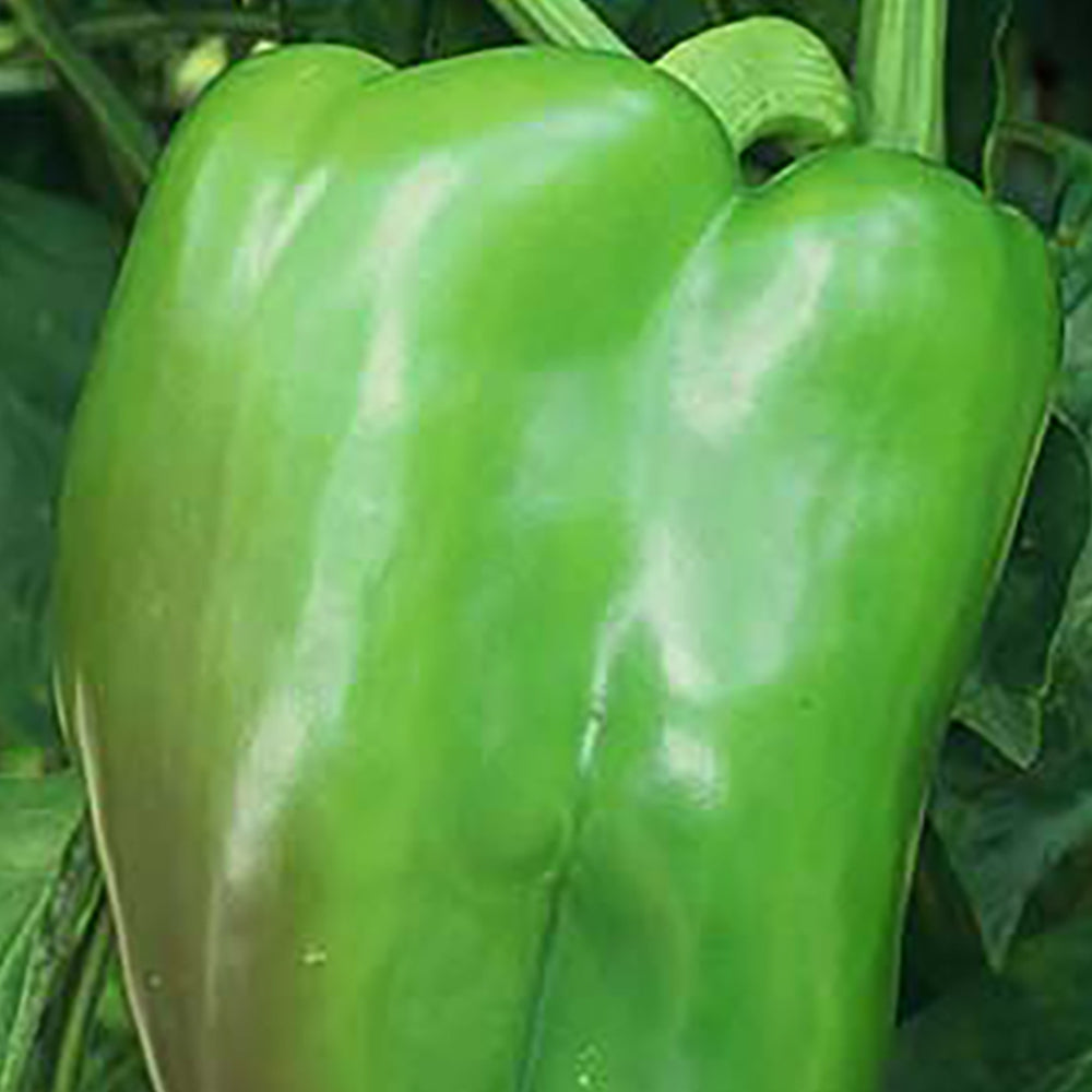 This is an outstanding bell pepper variety that produces a concentrated set even in cool weather. Extra-large, blocky thick-walled peppers are four-lobed, about 4½ inches long and wide, with firm flesh turning from green to brilliant red. Resistant to phytophthora, 4 races of bacterial leaf spot, and cucumber mosaic virus. 72 days.