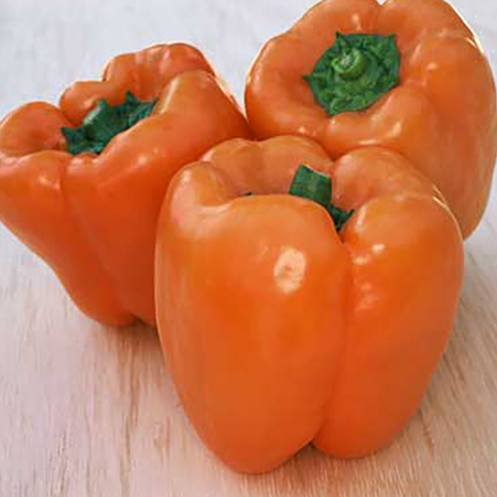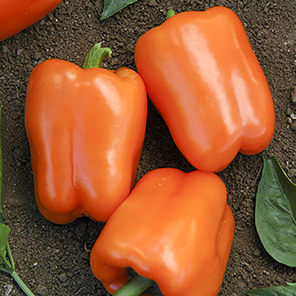 Beautiful deep-orange bell pepper is from 4 to 5 inches long and not quite as wide. Thick walls and very sweet flavor make this a wonderful addition to salads, stir fries, or any use when gorgeous color and sweet taste are desired. 80 days.