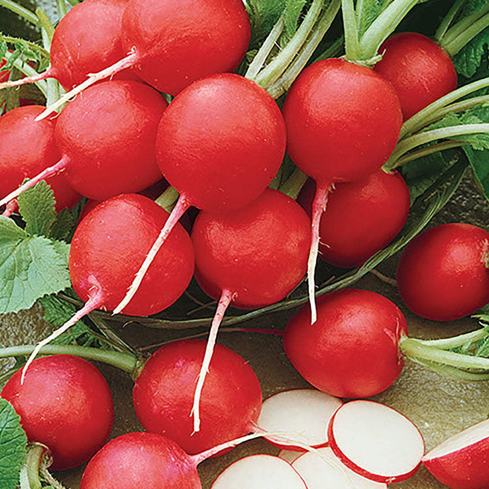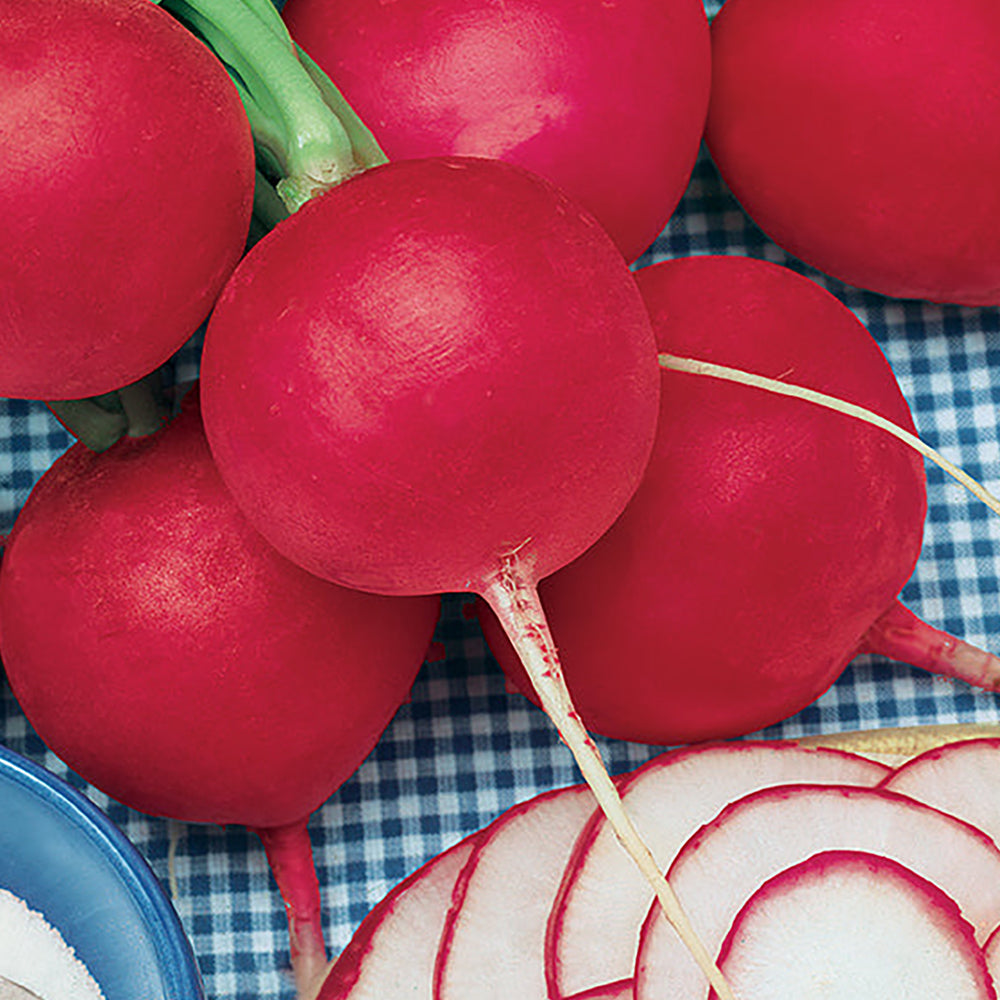 AAS Winner. One of the most popular garden varieties, it is bright red, round and firm with crisp white flesh. Tops average 3 inches. Keeps well. Early maturity – 25 days.