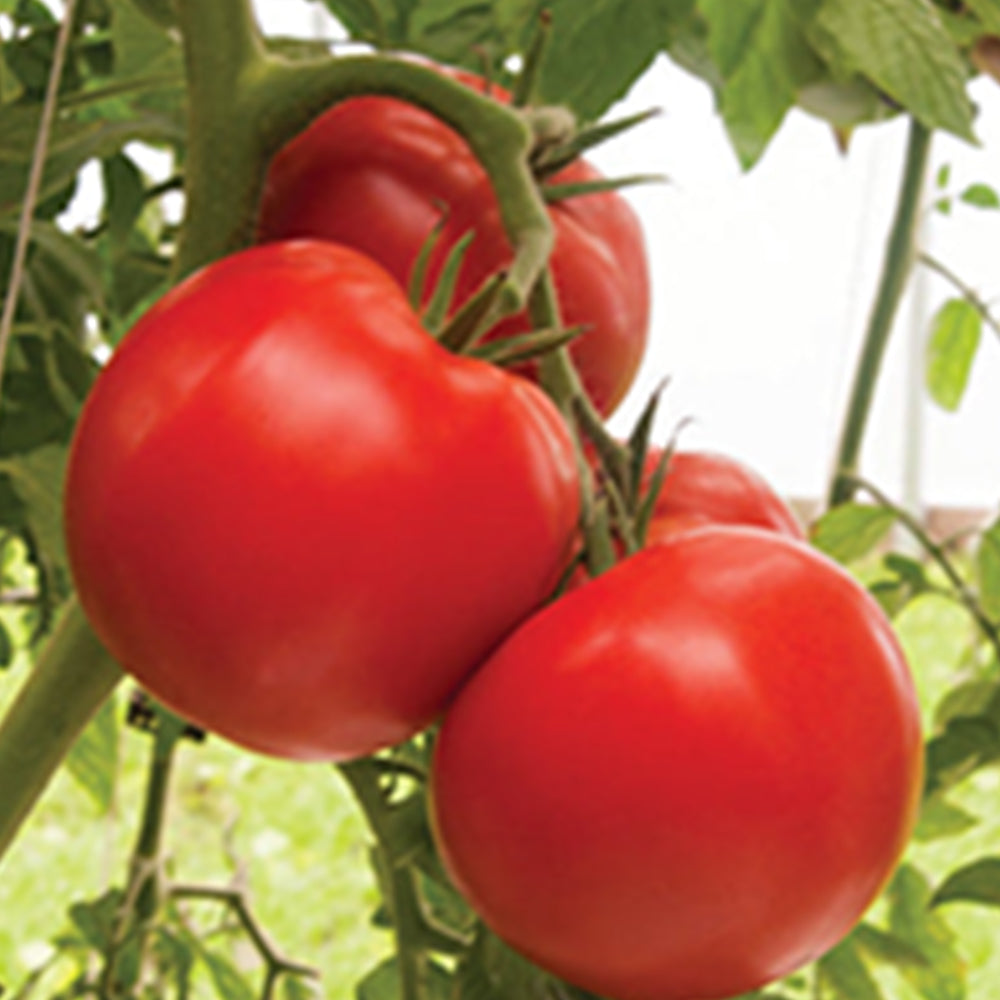 Heavy yields of very flavorful, 8 to 10 oz. beautiful red tomatoes are what makes this greenhouse variety so desirable. Vigorous plants keep producing for a long season, and fruit is of the highest quality, unblemished and deep red both inside and out. Indeterminate. 77 days.