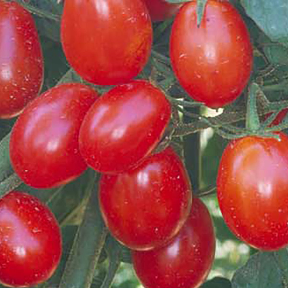 Long, grape-like clusters of brilliant red elongated cherry tomatoes have earned this variety its name. Very sweet, complex flavor is delicious and has made these tomatoes a favorite of people everywhere. In fact, pints of these have become a popular supermarket item. Vigorous vines are very productive, but none of these delectable little morsels will go to waste. Their taste is addictive! Crack-resistant and tolerant to heat and a number of tomato diseases. Indeterminate. 60 days.