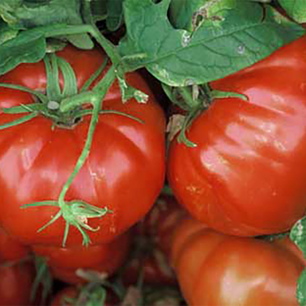 Huge, deep red beefsteak tomatoes are blemish-free and very well shaped for such large fruit. Their flavor is superb, sweet yet rich and deep with solid, meaty interiors. They weigh about 1 lb., but often become much larger. Generous harvests of these outstanding tomatoes originally from France. Indeterminate. 85 days.
