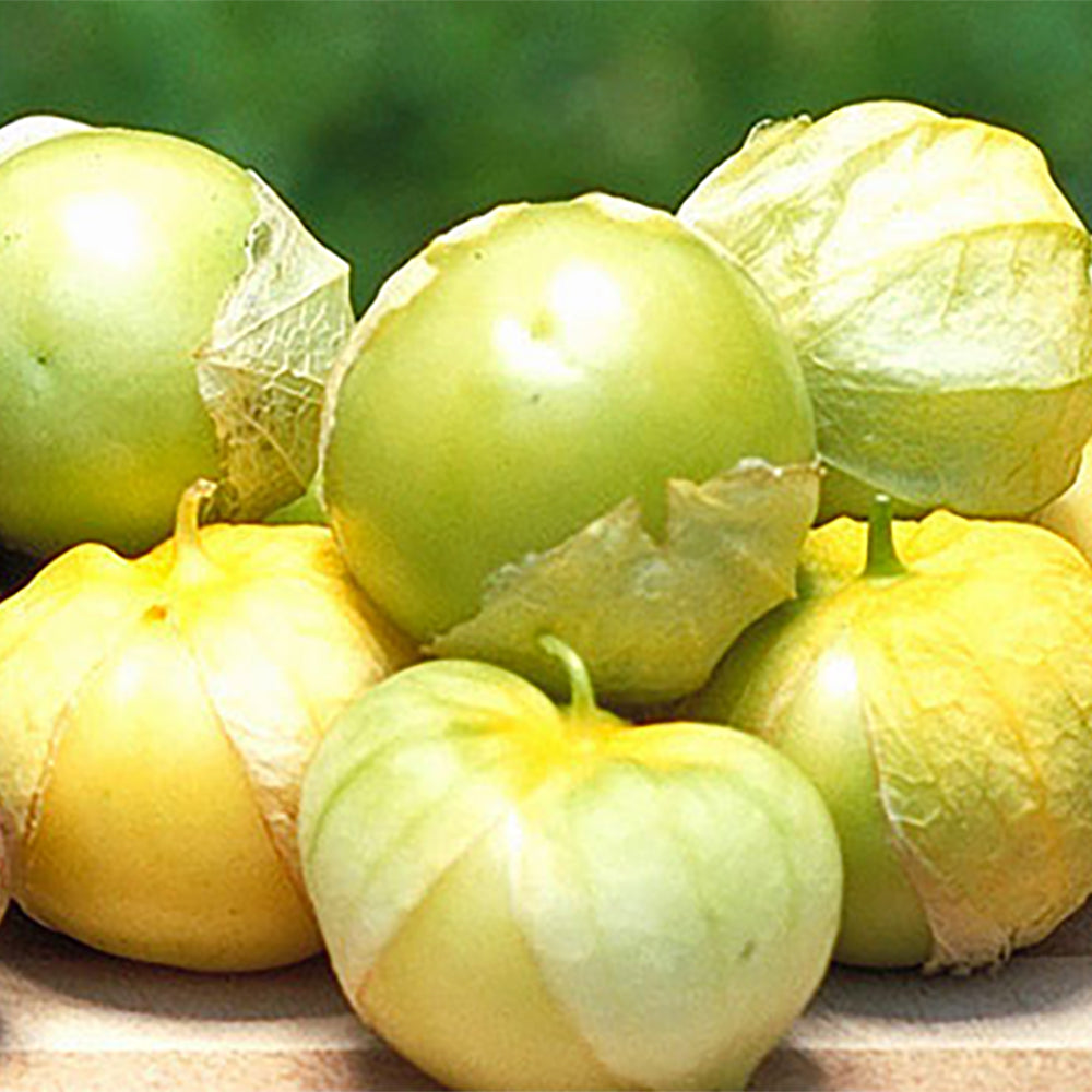 1 to 2 oz. round green fruit inside a tan colored, papery husk. Plants give a continuous set of these tomato relatives that are used to make green Mexican salsa. Easy to grow. Indeterminate. 75 days.