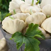 People love scallop squash that come in a variety of colors, and in particular this heirloom prized by Native Americans. The pale greenish-white fruit produce a fine flavored white flesh, that is 3 inches deep and 5 to 7 inches in diameter. Fruit can weigh up to 2.5 pounds. 50 days