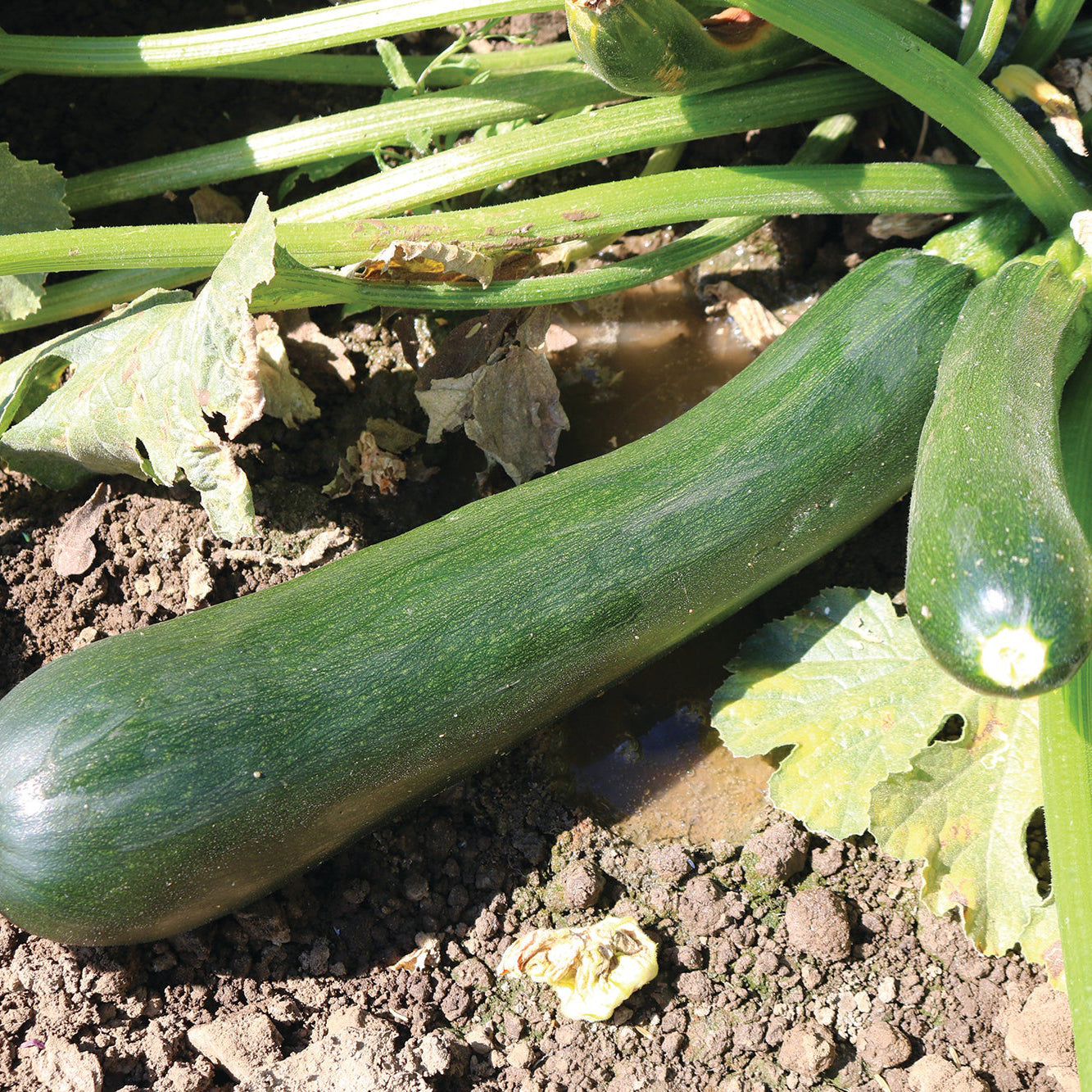This All America winning deep green zucchini leads a double life. Most people allow Commander to grow from 7 to 8 inches in length. But some clever gardeners harvested petite 4 inch fruit, in order to eat tender “baby” squash. Have it any way you like. Compact vines are open for easy picking. 54 days.