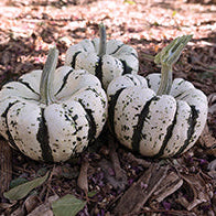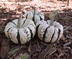 A compact vine producing 8 to 10 fruit per plant, that weigh up to ½ pound. When fully ripe, the delicious golden-orange flesh is sweet and delightful and can be baked, or stuffed. The fruit has an attractive green and white exterior with the color of delicata squash, but the shape is more like a tea cup. 90 to 105 days.