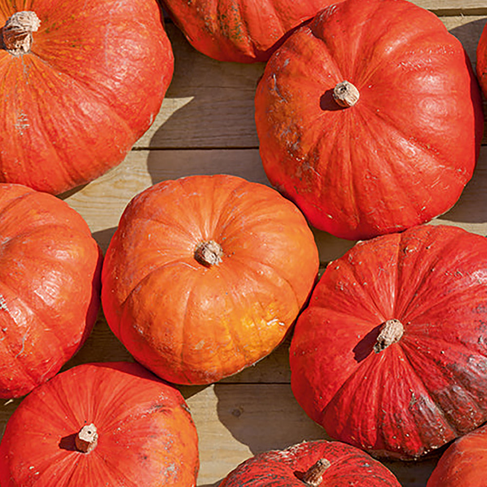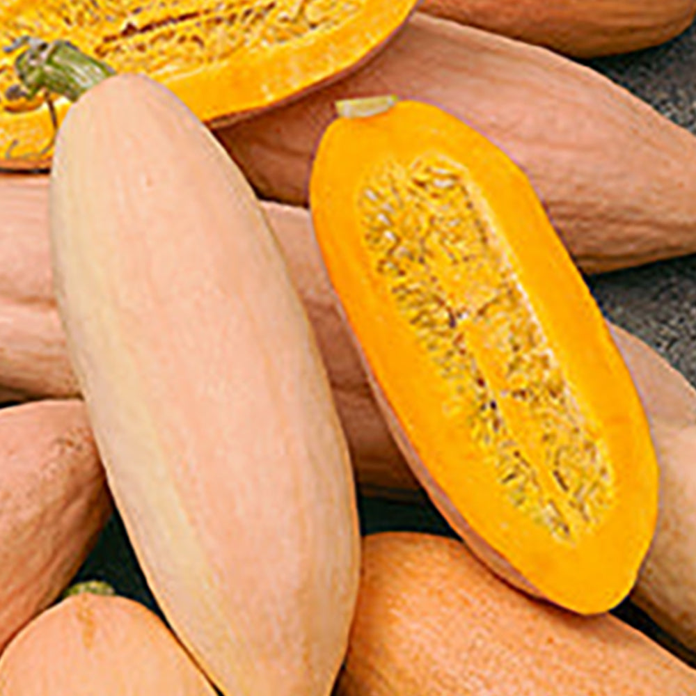 This hubbard squash has bright reddish-orange teardrop shaped fruit weighing 4 to 10 pounds, The smooth textured flesh has an exceptional nutty flavor and can be used for cakes, cookies, pies, or just steamed, or sautéed in butter. 95 days.