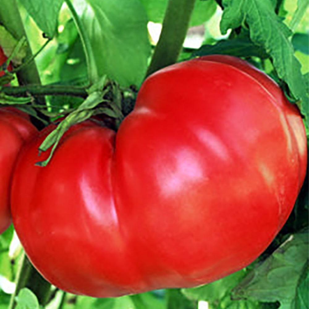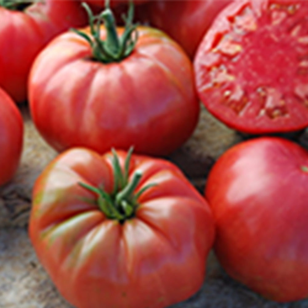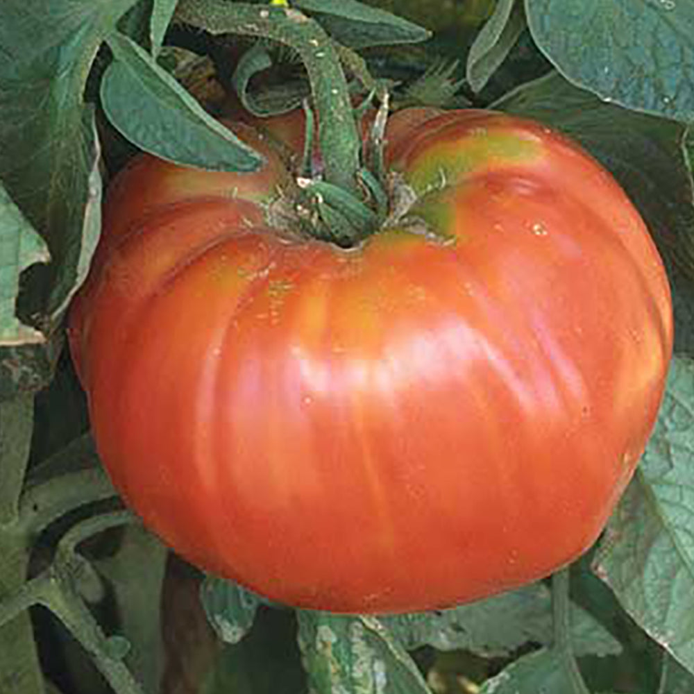 Huge, 1 1/2 to 2 lb. pink beefsteaks have an excellent, rich flavor that is sweet and delicious. In some gardens, these tomatoes routinely grow to 3 lbs. Vigorous plants offer plenty of these deeply ribbed, luscious fruits that are indeed giant. Heirloom variety. Indeterminate. 85 to 90 days.