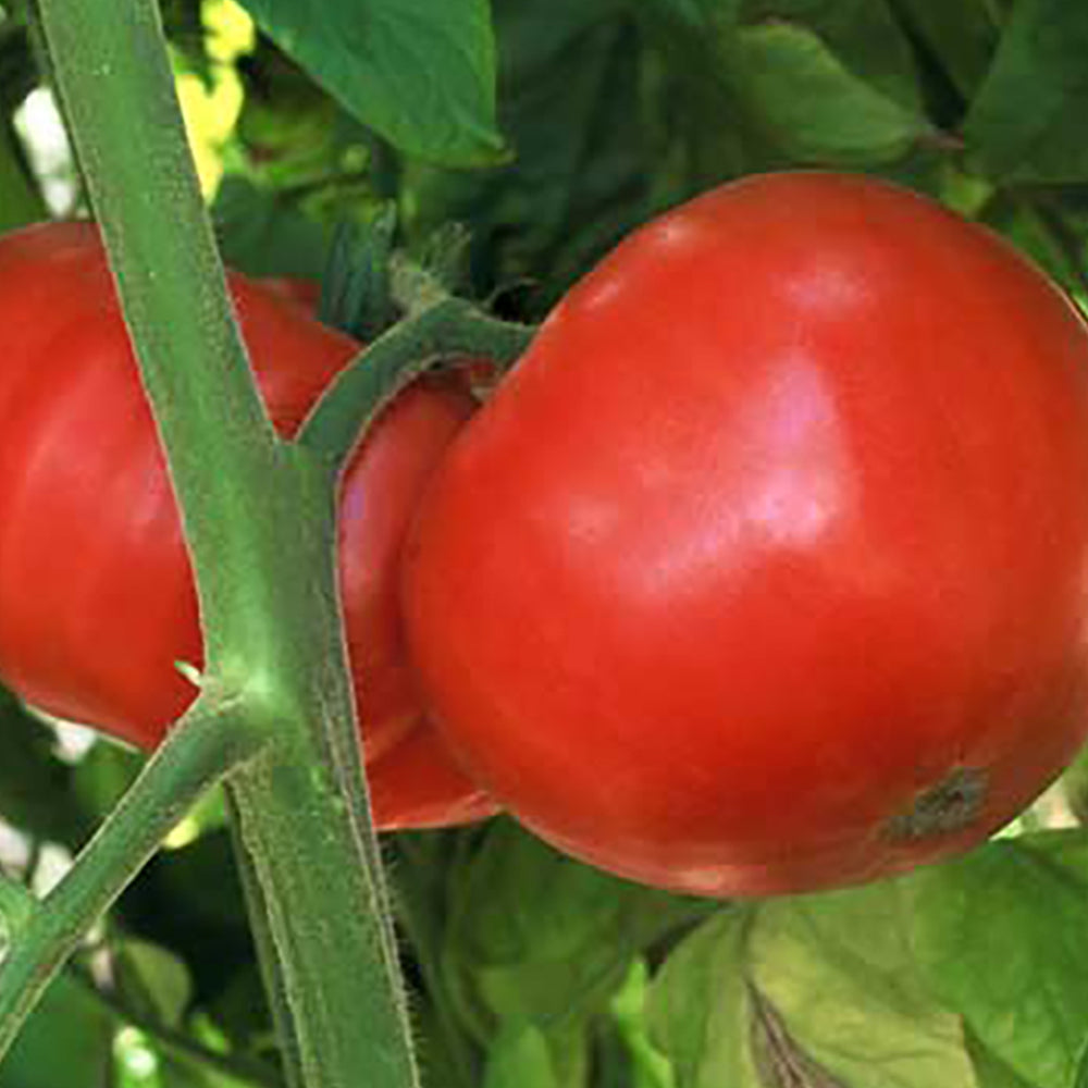 A longtime favorite variety with pink fruit up to a whopping 2 lbs. Firm and meaty, low in acid. To prevent sunscald, grow the large, vigorous vines in wire cages. Indeterminate. 80 days.