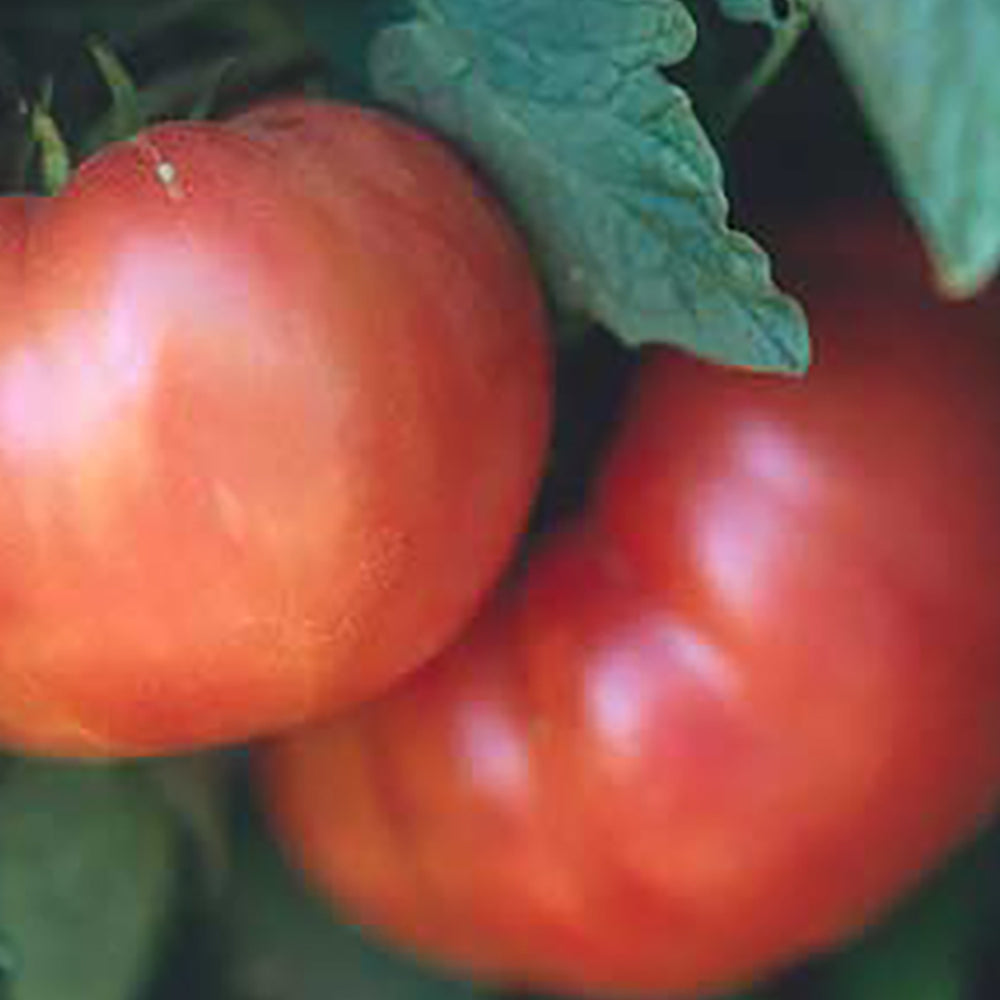 This heirloom strain offers large purplish-pink fruit that are sweetly flavored and almost all solid meat. The tomatoes are much like those of Giant Belgium, but a little flatter in shape. Indeterminate. 85 days.