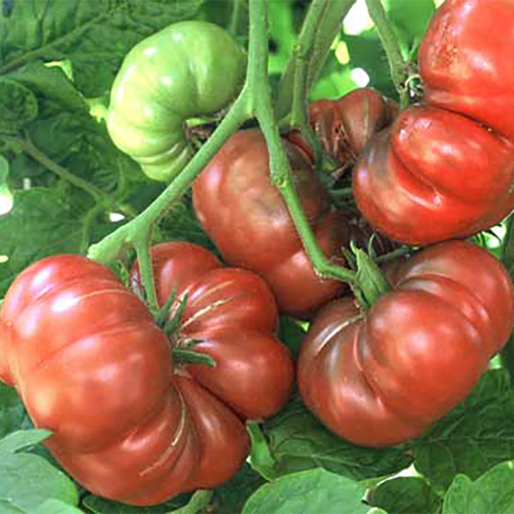 Deep reddish-brown beefsteak tomato has a rich, sweet flavor that is delicious. Fruit is smooth in texture and weighs from 8 to 12 ozs. This outstanding variety is very productive and seems to set well even when weather turns hot. Russian heirloom. Indeterminate. 75-80 days.