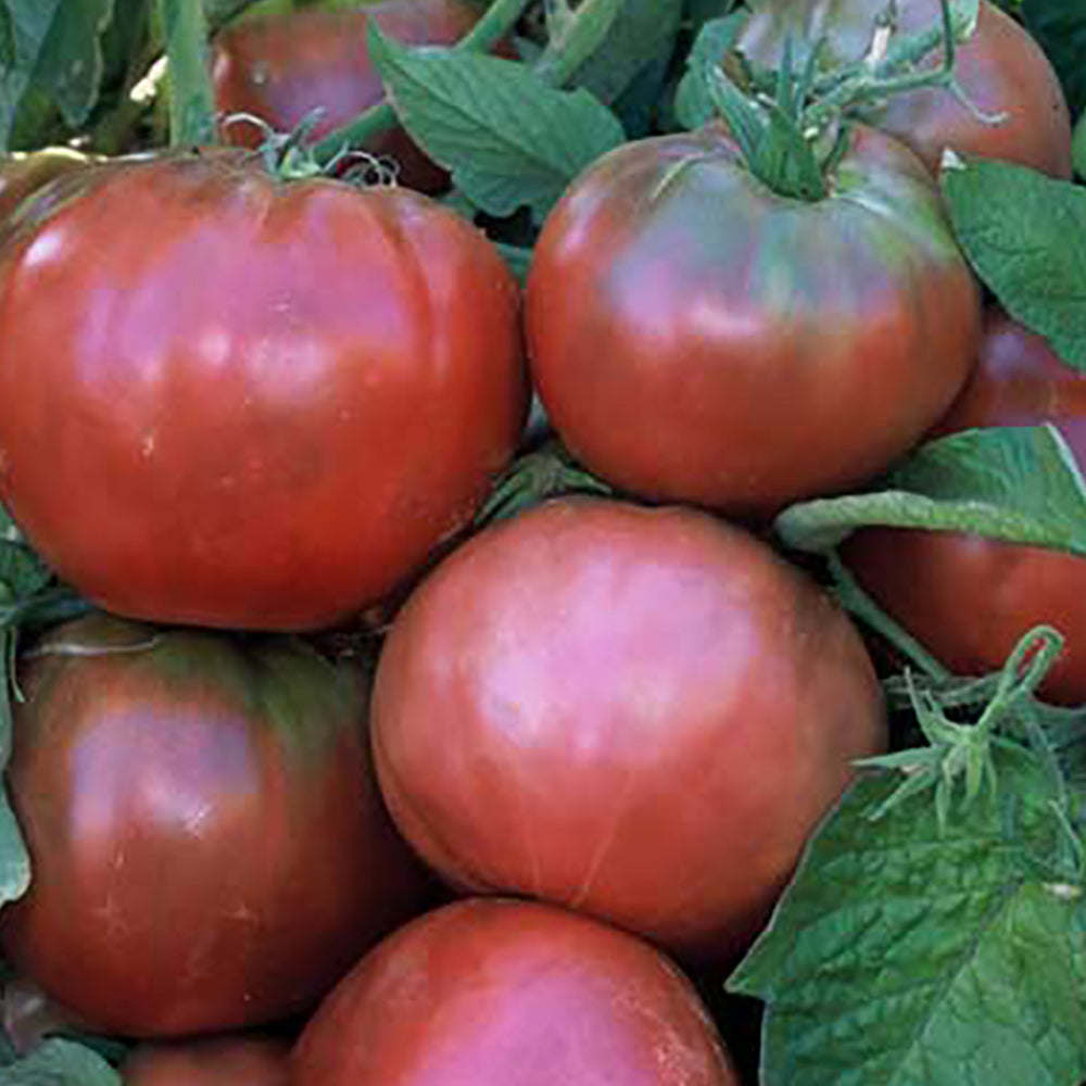 A distinctive purplish-gray hue is what gives this 'black' tomato its name. What also sets it apart is its potato-leaved foliage, which is not often seen in black varieties. Tomatoes are medium-sized, about 8 ozs., and boast that uniquely robust yet sweet flavor that makes black tomatoes so outstanding. Indeterminate. 78 days.