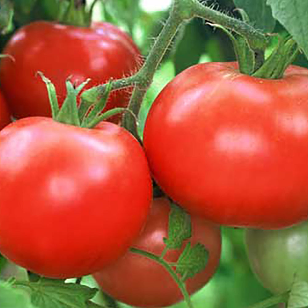 This compact plant becomes loaded with long trusses of perfectly round, smooth beautiful clear pink tomatoes. The flavor is very good, sweet yet tangy, making this a wonderful addition to an early harvest. Heirloom variety of Russian origin. Determinate. 58 days.