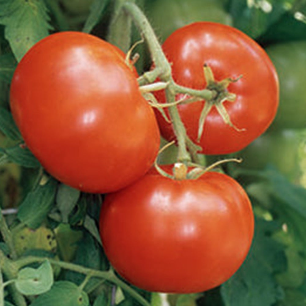 A classic French slicing tomato, this one is making a comeback after being absent from our inventory for many years. It has a deservedly great reputation both in America and Europe, due to its wonderful flavor, perfect sugar/acid balance, and crack-resistant skin. Bright red juicy tomatoes are 5 to 7 ozs. with a beautiful round shape. Expect very high yields on disease-resistant plants. Indeterminate. 75 days.