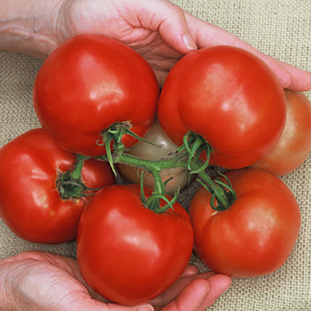 A premier greenhouse tomato. Very productive plants bear 8 oz. uniformly red fruit that is resistant to splitting and perfect in appearance. Excellent flavor causes many growers to consider this the best tasting of the greenhouse-grown hybrids. Can be grown as a cluster tomato with 6 to 8 tomatoes per cluster. Indeterminate. 70 days.