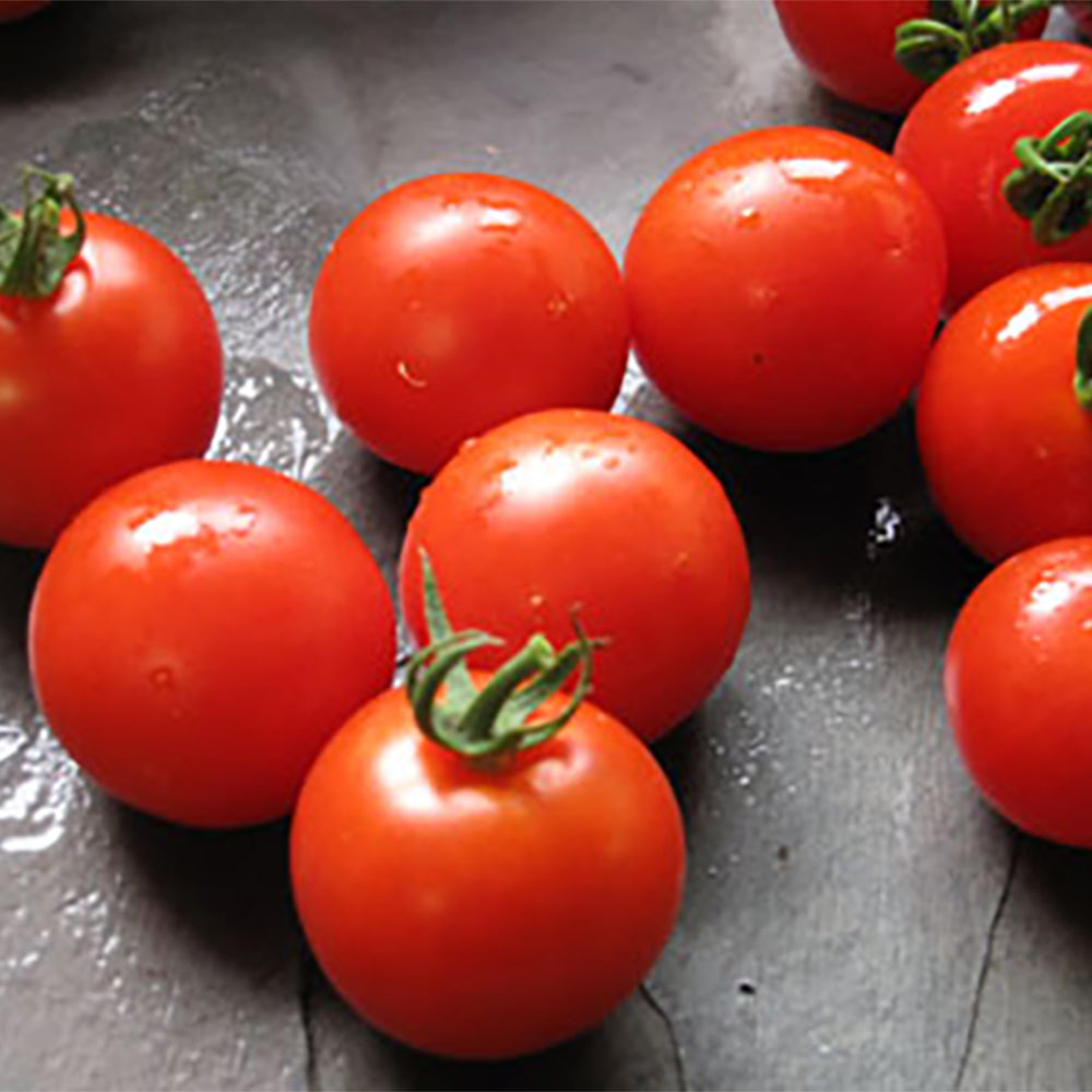 Released by the North Carolina tomato breeder Dr. Randy Gardner, this innovative new variety has great tasting tomatoes and important resistance to both early and late blight. Mountain Magic, a cross between a large-fruited tomato and a very sweet grape tomato, is similar to the cultivar "Campari" found in specialty markets. Abundant long clusters of 2 oz., round to deep round red tomatoes are crack resistant, so they hold up very well after harvest. Their wonderful flavor combines bold acid perfectly balanced with a generous amount of sugar, adding up to a real taste treat. Compact indeterminate. 72 days.