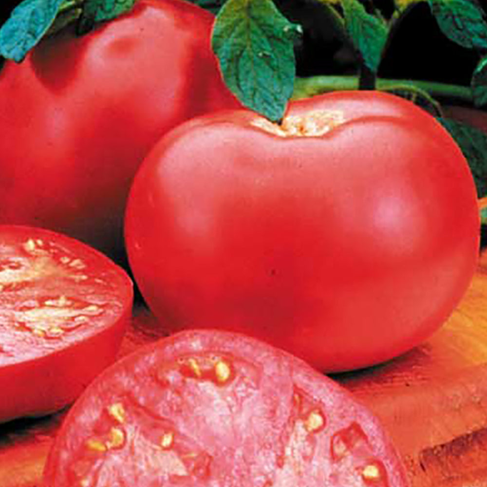 Large, juicy, 8 oz. pink tomatoes with mild flavor and good crack resistance. Smooth fruit have a very pleasant taste with just the right amount of sweetness. Expect harvests to continue the entire summer. Indeterminate. 76 days.