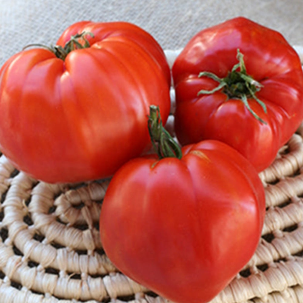 Huge red heart-shaped tomatoes are absolutely luscious, hefty and solid but still delicate inside with superb juicy flavor. Their shape may vary from an elongated globe to a true heart shape, but we still call this an oxheart for its wispy foliage and the fruit's meaty texture. Slice these for dinner, or when the harvest brings too many, cook them into a richly flavored sauce. Heirloom variety. Indeterminate. 80 days.