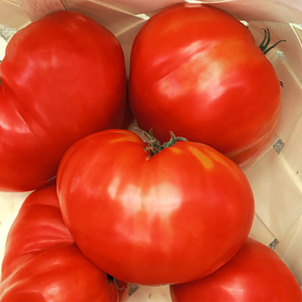 Huge, red heart-shaped fruit is often doubled and can weigh up to 1 lb. and more. This one is well known for its excellent flavor, and is very juicy with solid meat and few seeds. It is also more productive than the typical oxheart type. Heirloom variety. Indeterminate. 90 days.
