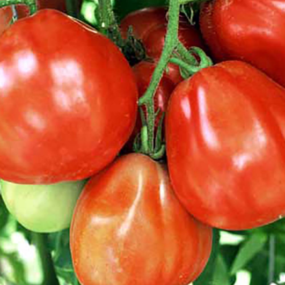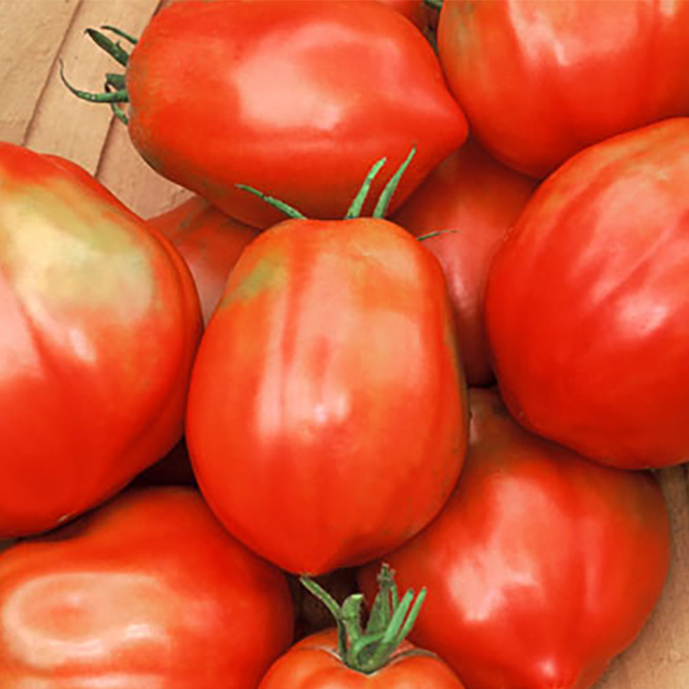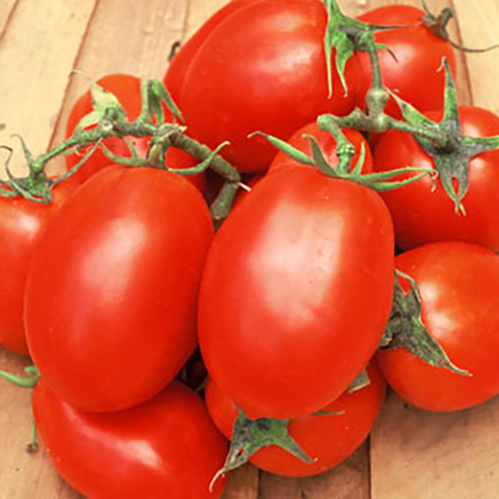 One of the most popular varieties for paste, sauces and canning. Compact vines yield large harvests of 3 inch long, bright red fruit that may be pear-shaped or plum-shaped. Thick walled and solid with few seeds. Determinate. 78 days.