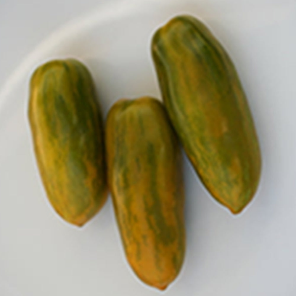 Compact, mounded plants bear loads of beautiful 4-in. long sausage-shaped tomatoes that are yellow with green stripes. Their rich, sweet flavor and firm texture make them wonderful as a specialty paste tomato. Think of using them to make a great-looking tomato sauce or a vibrantly green salsa. Determinate. 75 days.